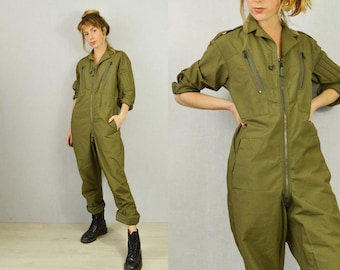 Vintage Og 90s British Flight Suit Khaki Green Coveralls Etsy De